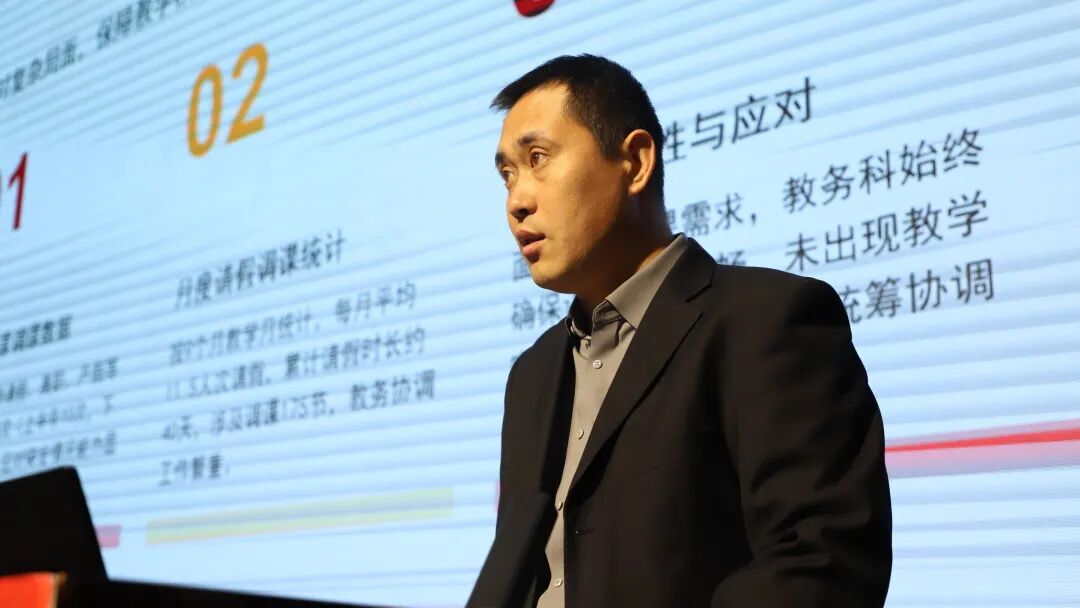 会上,各位中层干部依次登台述职,紧紧围绕立德树人根本任务,立足部门职责与岗位使命,从2025年度履职情况及工作特色亮点、存在问题与不足、2026年工作计划、个人廉洁自律等方面,全面回顾一年来的履职实践与工作实绩,深刻剖析短板不足,科学谋划新学期发展思路。