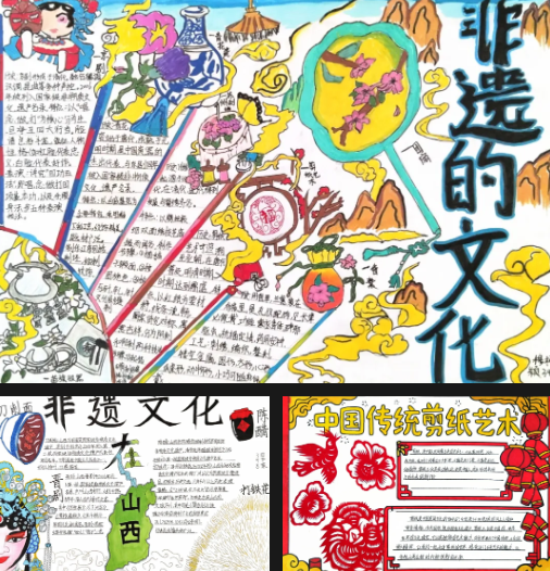 一张张精心设计的手抄报,主题鲜明、内容充实、色彩明快,同学们用画笔勾勒出吕梁非遗的独特魅力,将扭秧歌、转九曲、剪纸、花馍等民俗文化生动呈现,既展现了扎实的文字与绘画功底,更表达了对家乡传统文化的由衷热爱。