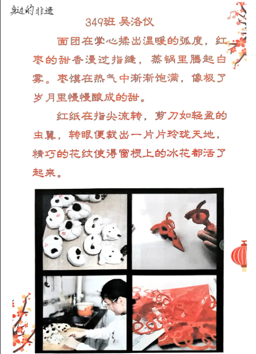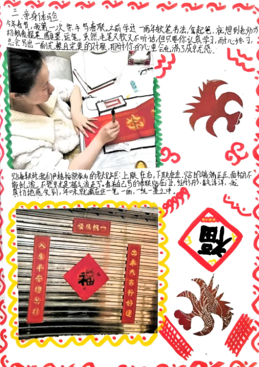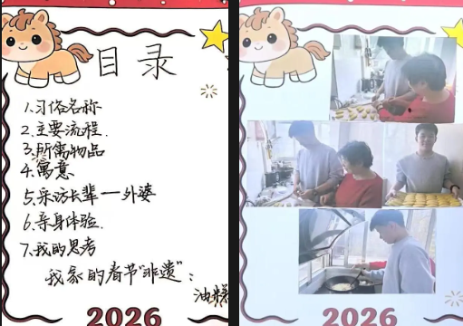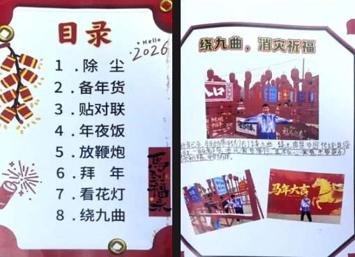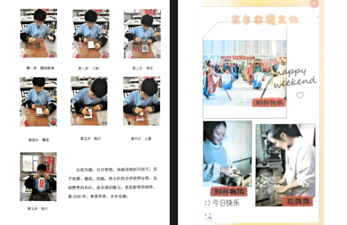 精致的手账本里,藏着同学们对非遗文化的细致观察与认真记录。图文结合、排版精美,既有对习俗的介绍,也有亲身实践的感悟,每一页都充满巧思与温度,让传统文化在一笔一划中得以传承。