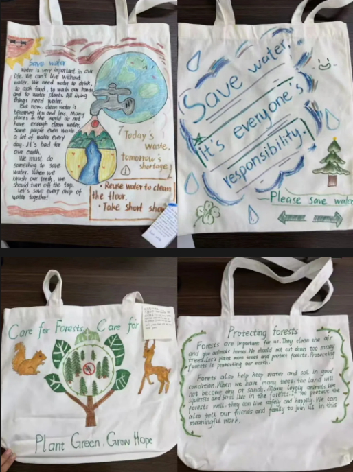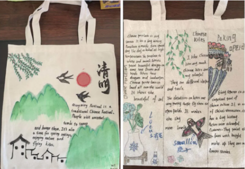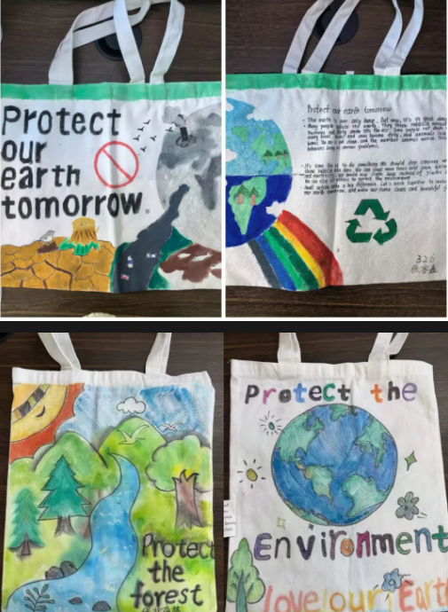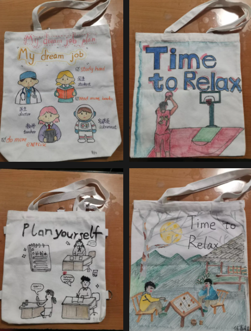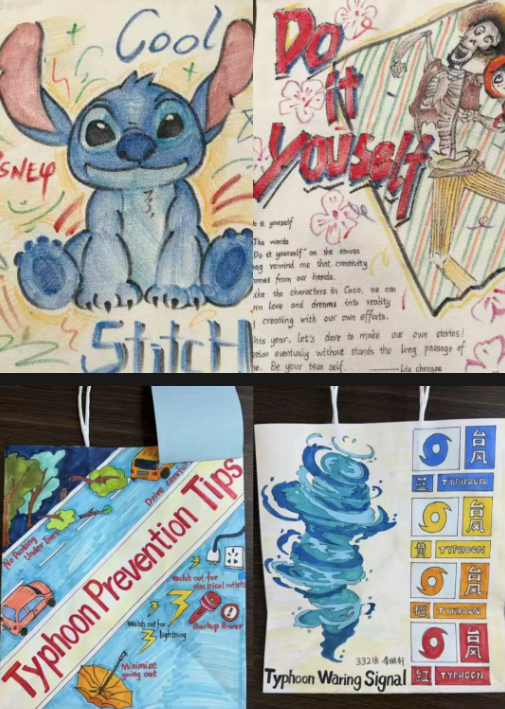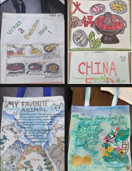初二年级紧扣英语课本中的话题,开展手绘帆布包、手绘短袖创意实践活动,让英语学习跳出课本,以创意形式鲜活呈现。