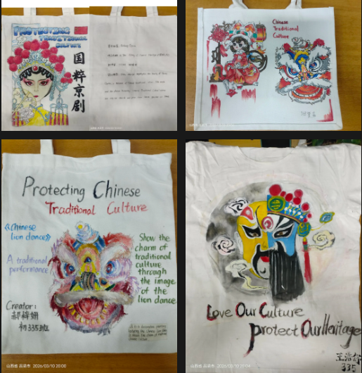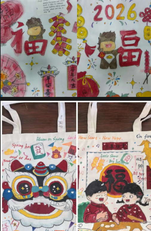 一笔一画绘古韵,一针一线传文明。同学们将传统纹样、非遗元素、国风意境绘于帆布之上,让东方美学与青春创意相遇,在色彩与线条中感受传统文化的深厚底蕴,让文化自信随身而行、入心入怀。